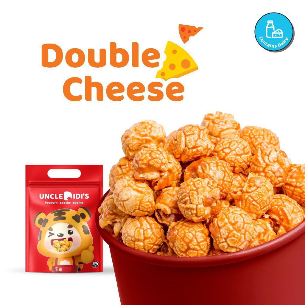 What is better than just cheese? Double Cheese! A palatable and savoury mix of white cheese and cheddar cheese, this popcorn is the perfect indulgence for cheese lovers that is sure to remind you of a familiar and nostalgic childhood snack!We are kiasu lah (Singaporean uncles mah!), so instead of making this flavour with one type of cheese, we extra a bit and make it DOUBLE! But hor, you won’t regret it, because the savoury flavour of white cheese and cheddar cheese is so shiok you’ll keep wanting more!