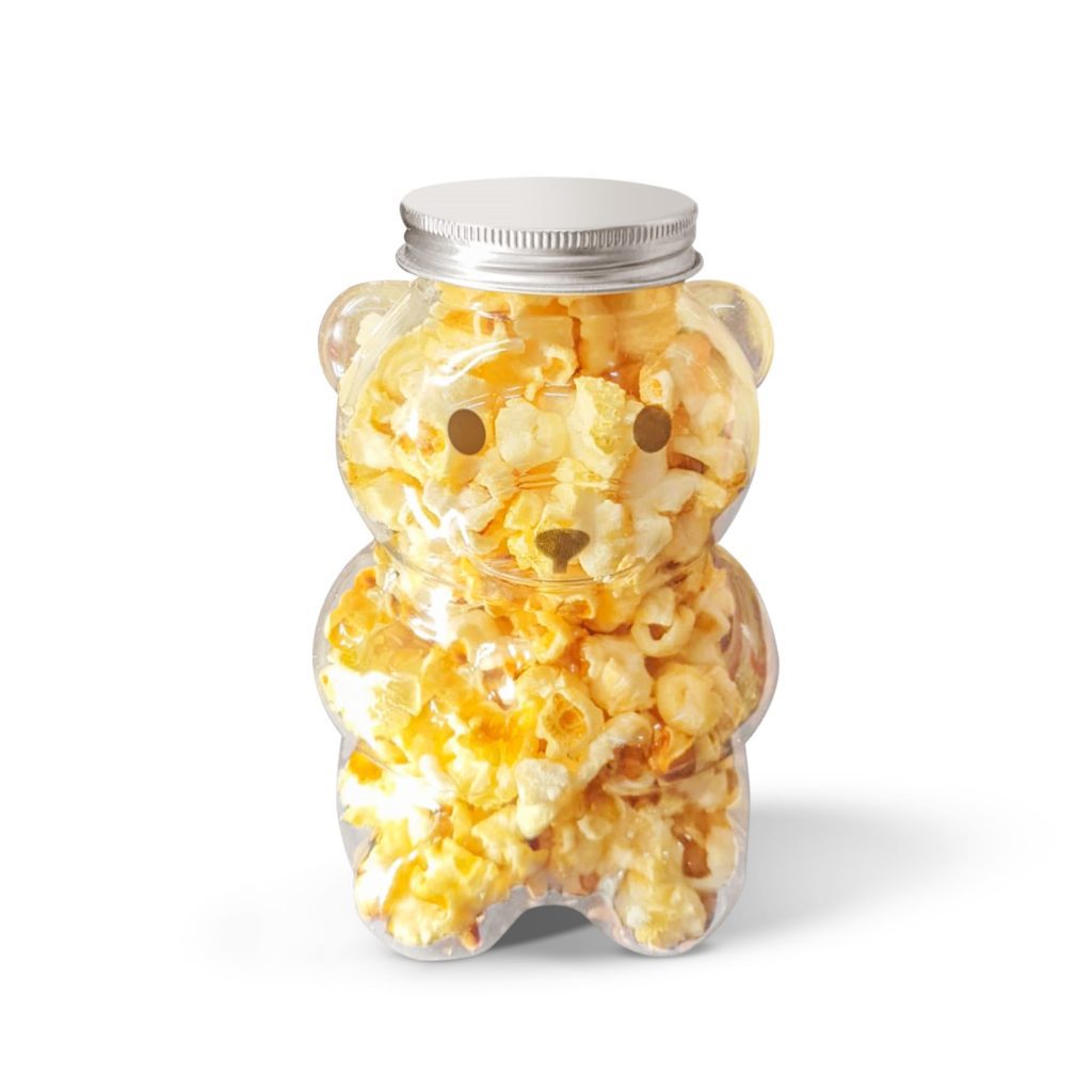 Prepacked popcorn in a cute bear shaped container caters to your events of any size.