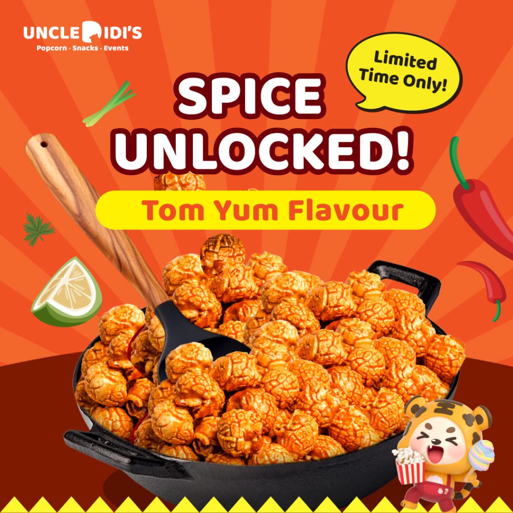 Brace your tastebuds—this is not your average popcorn. Uncle DiDi’s Tom Yum flavour packs a bold, zesty punch inspired by Thailand’s iconic hot and sour soup. Think fiery chili heat, a splash of lime zing, and the deep umami kick of lemongrass and herbs, all hugging our signature crunchy kernels.